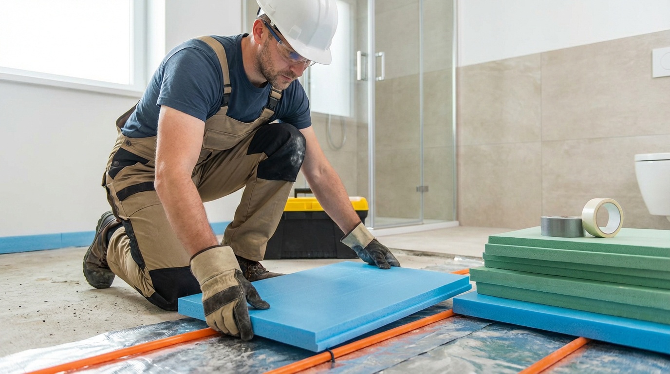 Comme nous traitons d’une pièce d’eau, la question n’est pas seulement thermique, elle est sanitaire. On ne peut pas poser n’importe quoi sous un carrelage de salle de bain sans risquer le désastre.